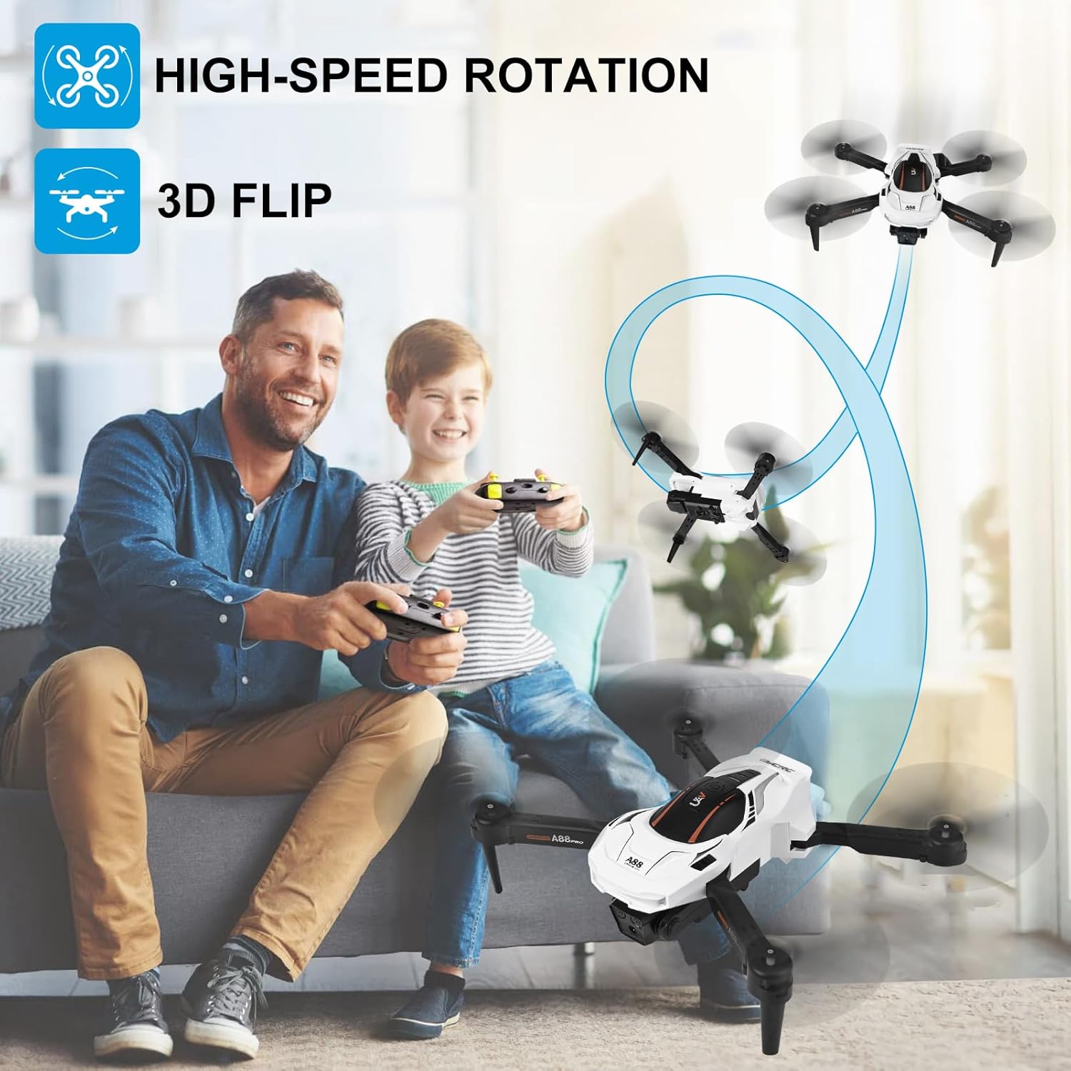 ✈️【Multiple Functions】A88 drone for beginners can realize many functions through the remote control or app, 3D flip, gesture photo, app detection mode, headless mode, 3 speeds, enjoy exploring the drone with the 1080P/720P camera, so you can get endless fun while flying the drone video. Record everything with the A88 mini drone camera!