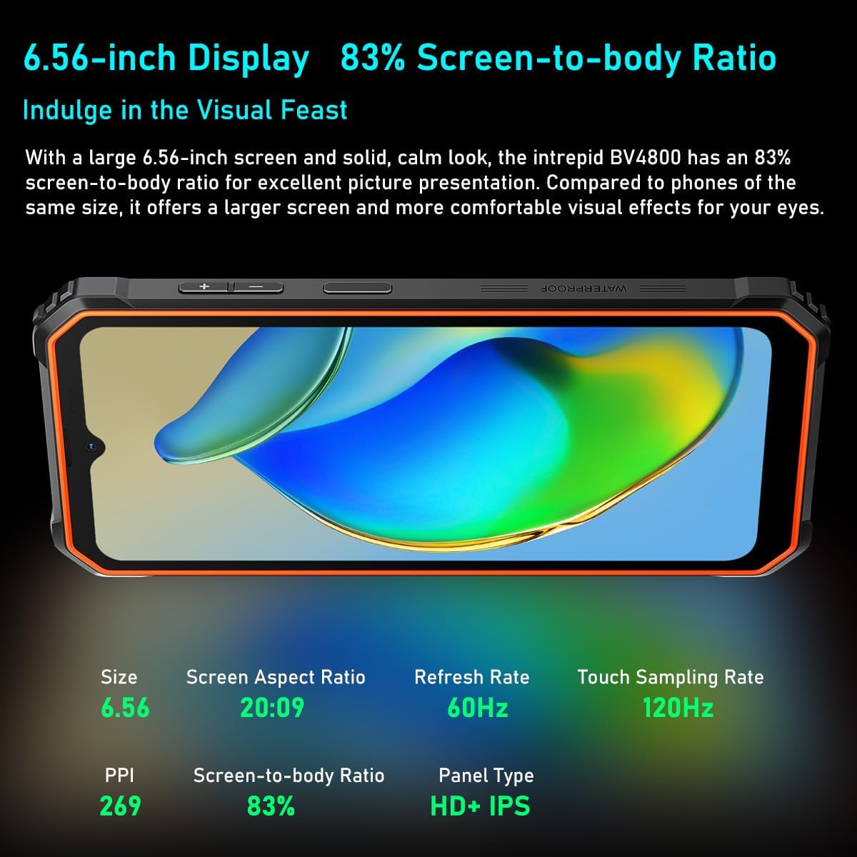 ★ 6.56 inch display, 83% screen-to-body ratio, immerse yourself in the visual party: With a large 6.56-inch screen and a solid, quiet appearance, the intrepid BV4800 has an 83% screen-to-body ratio for excellent image presentation. Compared with phones of the same size, it offers a larger screen and more comfortable visual effects for your eyes. (120Hz refresh rate, 20:09 aspect ratio)