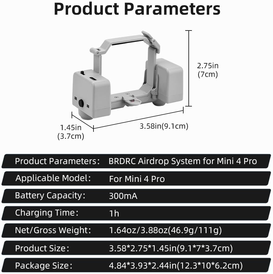 The launcher weighs 47g. The maximum load is about 100g. It is easy to carry and does not affect flight performance. Type C charging only takes 60 minutes to fully charge