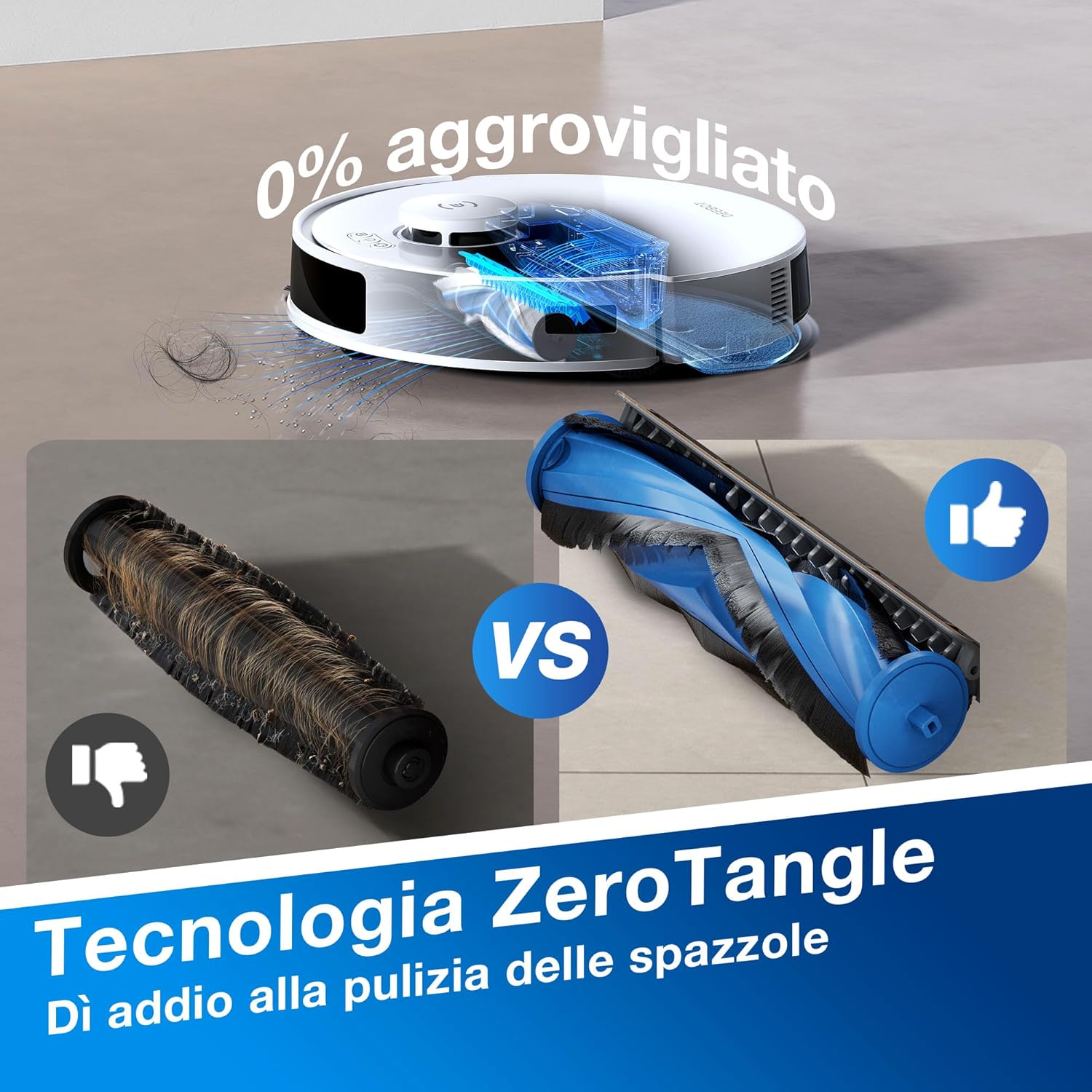 【Addio a Grovigli e Macchie】Il DEEBOT N20 utilizza la tecnologia avanzata di pulizia ZeroTangle Anti-Tangle per rimuovere facilmente i grovigli di capelli e pulire in modo efficiente. Inoltre, grazie alla potente aspirazione e al sistema di pulizia OZMO, il DEEBOT N20 è in grado di rimuovere facilmente le macchie ostinate, lasciando i tuoi pavimenti perfettamente puliti e senza grovigli.