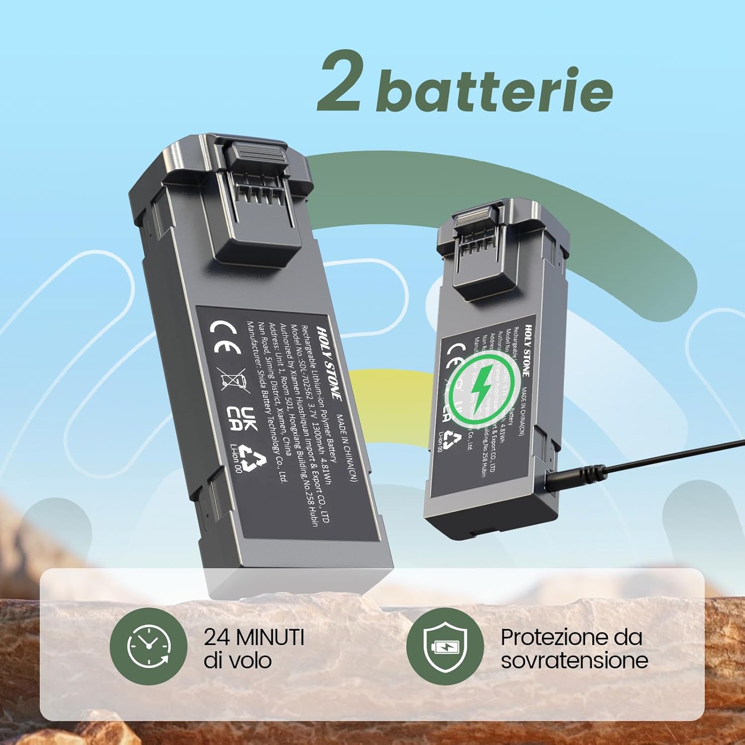 Lightweight but durable: the lightweight body weighs less than 249g (C0 certified) and the folding propellers are more suitable for storage and transportation. Thanks to the 2 batteries, the flight time is extended up to 24 minutes. Longer than other similar products.