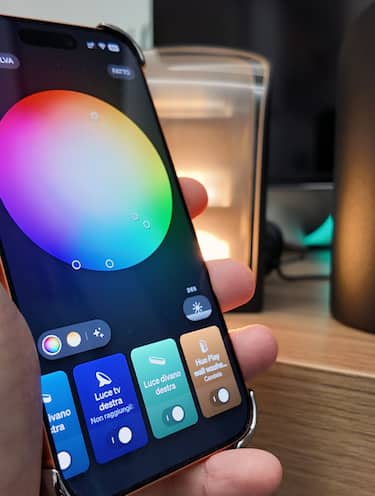 Le luci si gestiscono attraverso l’app Hue che consente il controllo completo, la creazione di scene, routine, sveglie luminose. È possibile ad esempio impostare al momento il proprio colore preferito, decidere i colori in base all’orario o alla giornata, accendere o spegnere da remoto, collegare le luci ad altre dello stesso marchio per ottenere effetti (moltissimi sono scaricabili gratuitamente) sincronizzati in tutta la stanza, o in tutta la casa.