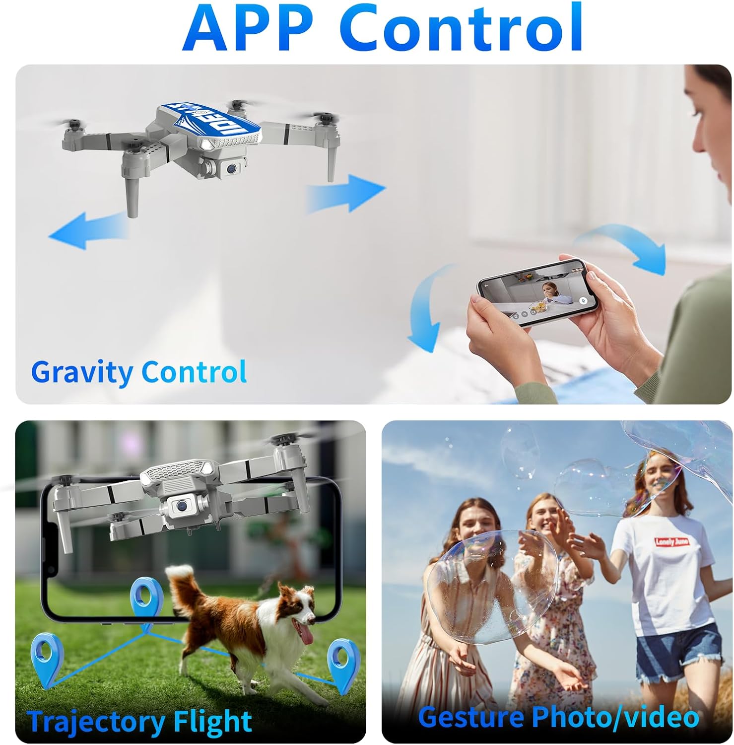 1080P+ 90° Adjustable Camera: Equipped with a 1080P camera and a 90° adjustable lens, this camera drone captures crisp aerial photos and smooth videos. Easily adjust the camera angle even when the drone is in flight to meet shooting needs.