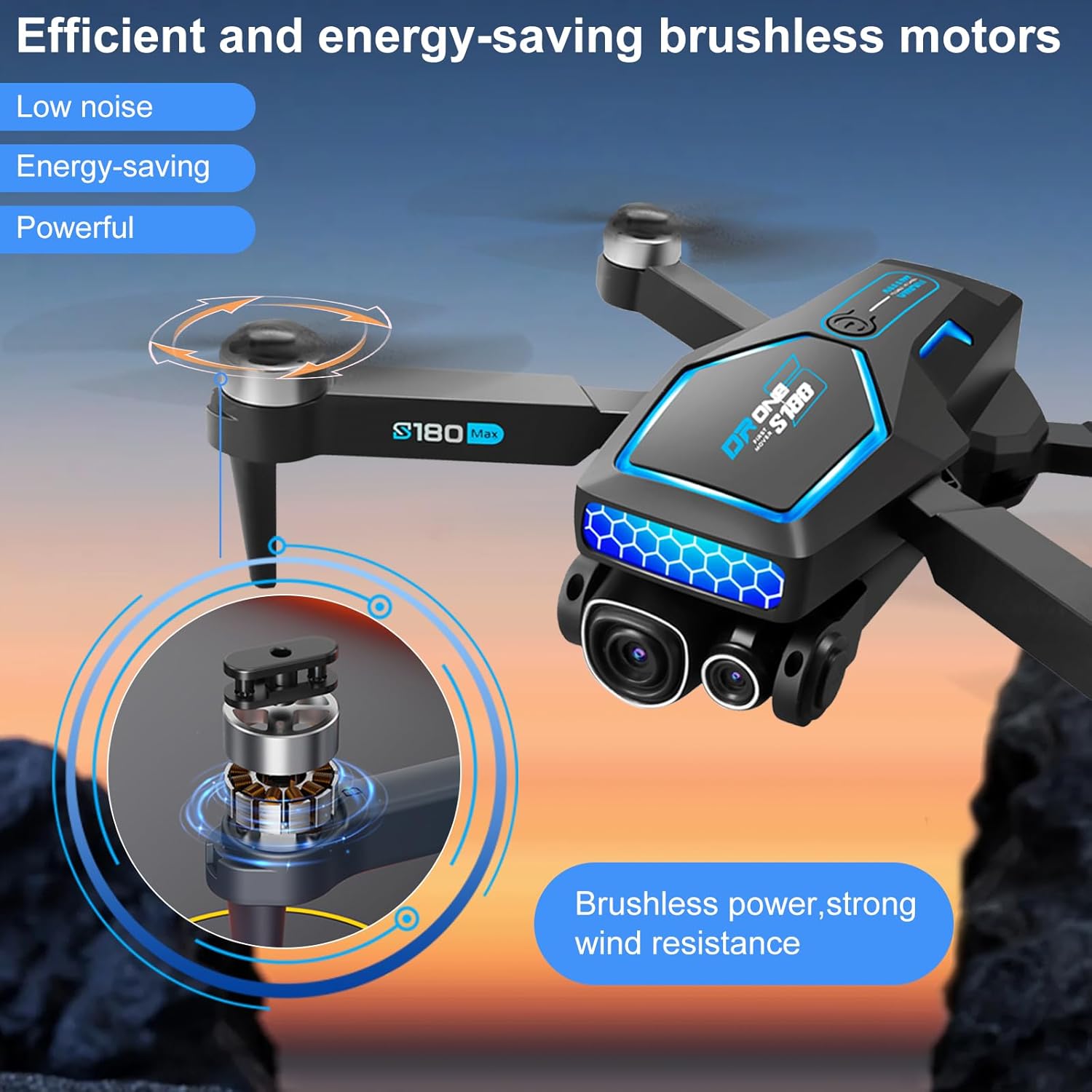 【90° Electric Adjustable Lens】Professional drones are equipped with dual cameras and 90° electrically adjustable lens. The shooting angle (horizontal and vertical) of the camera can be adjusted at any time via remote operation during flight, allowing multi-angle dynamics. Mini drone with 4k camera Equipped with anti-shake technology to keep images stable and clear during flight, reducing vibration and blurring