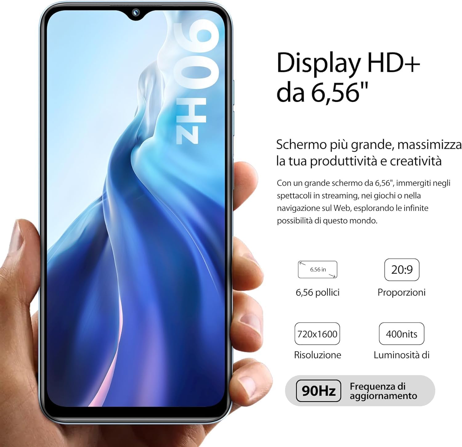 OUKITEL C36 Android Phone, 12GB RAM 128GB ROM Expandable 1TB, 6.56″ HD Display, 5150mAh Battery, 13MP Camera, Dual SIM 3 Slot/5G-WiFi/GPS/Face ID/OTG, Efficiency Class A